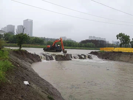 8月29日上午,市區(qū)快速路環(huán)線工程(一期)臨時(shí)3號箱涵河道順利開挖,伴隨著挖掘機(jī)的轟鳴聲,海鹽塘河水滾滾流入導(dǎo)改河中,標(biāo)志著市區(qū)快速路環(huán)線工程(一期)土建3標(biāo)虹海橋臨時(shí)導(dǎo)流工程正式拉開施工序幕。
