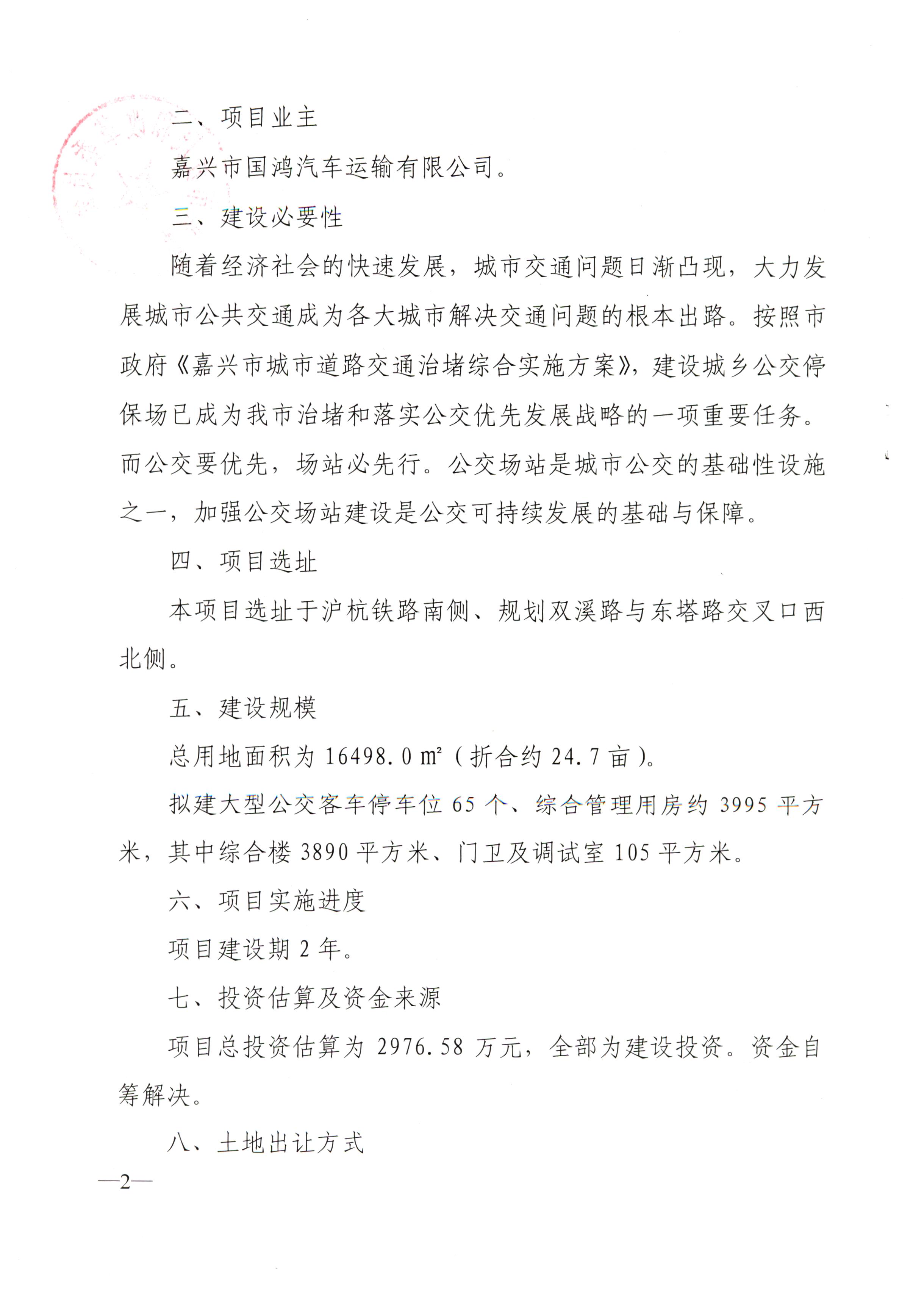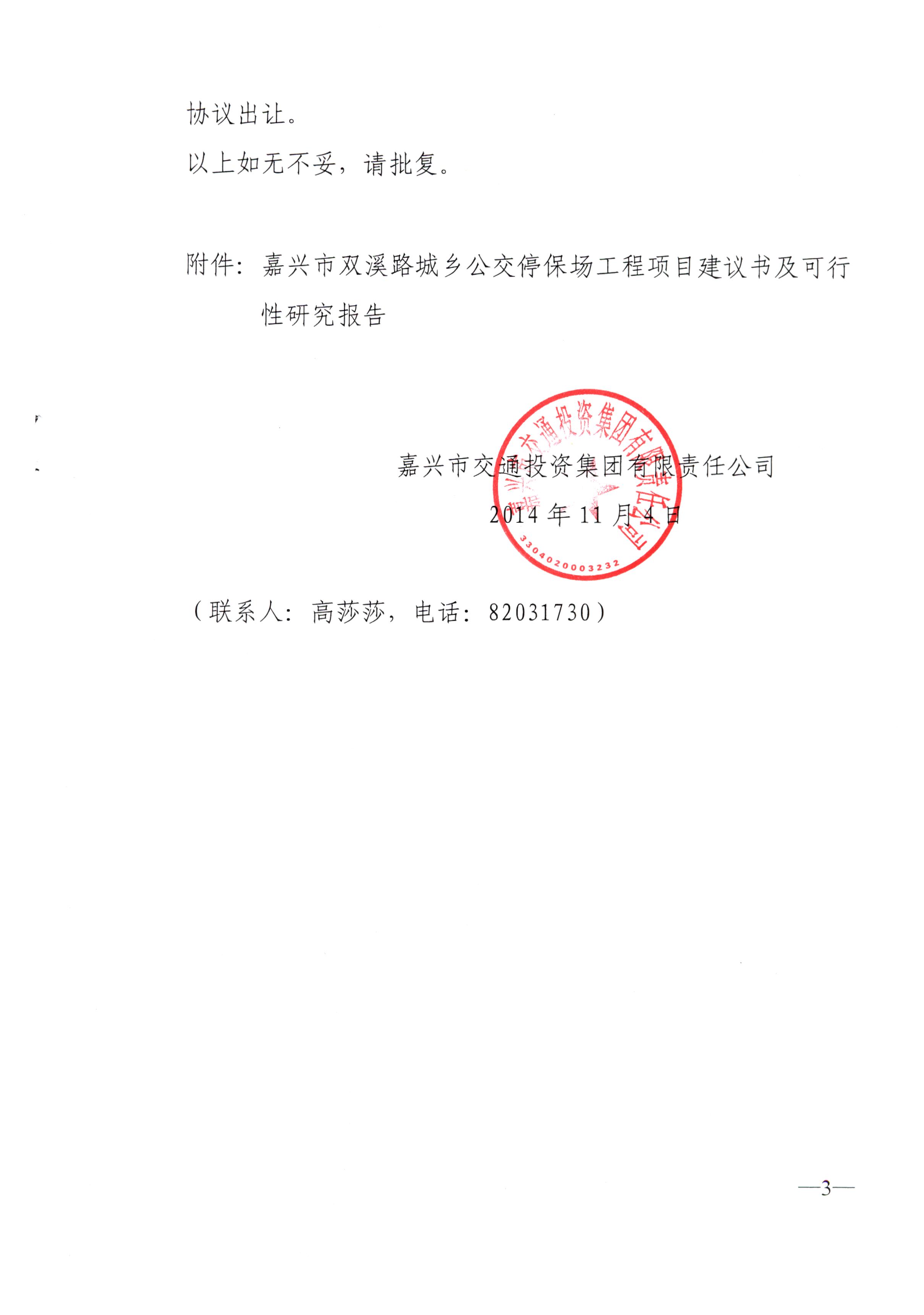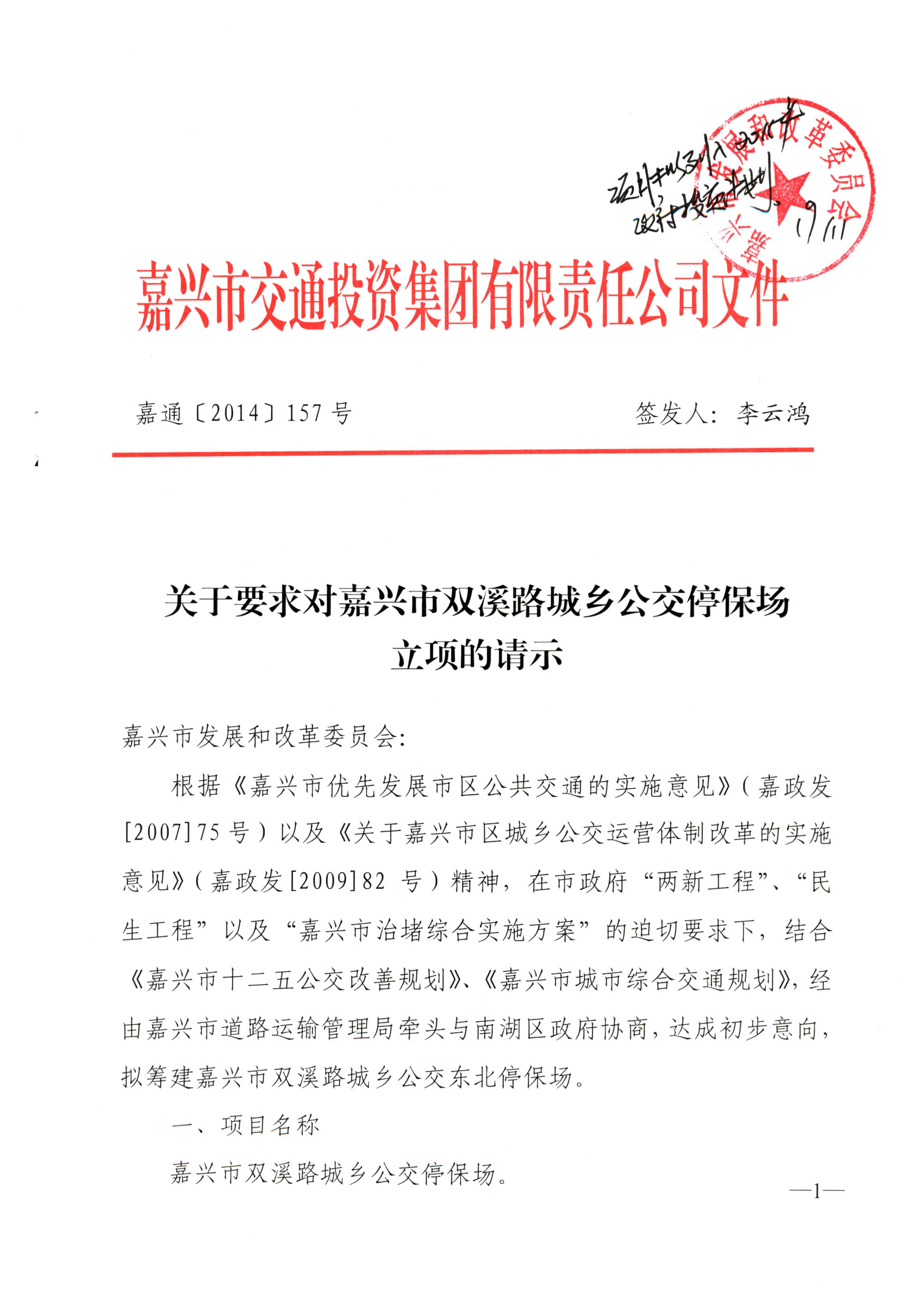 關于要求對嘉興市雙溪路城鄉(xiāng)公交停保場立項的請示